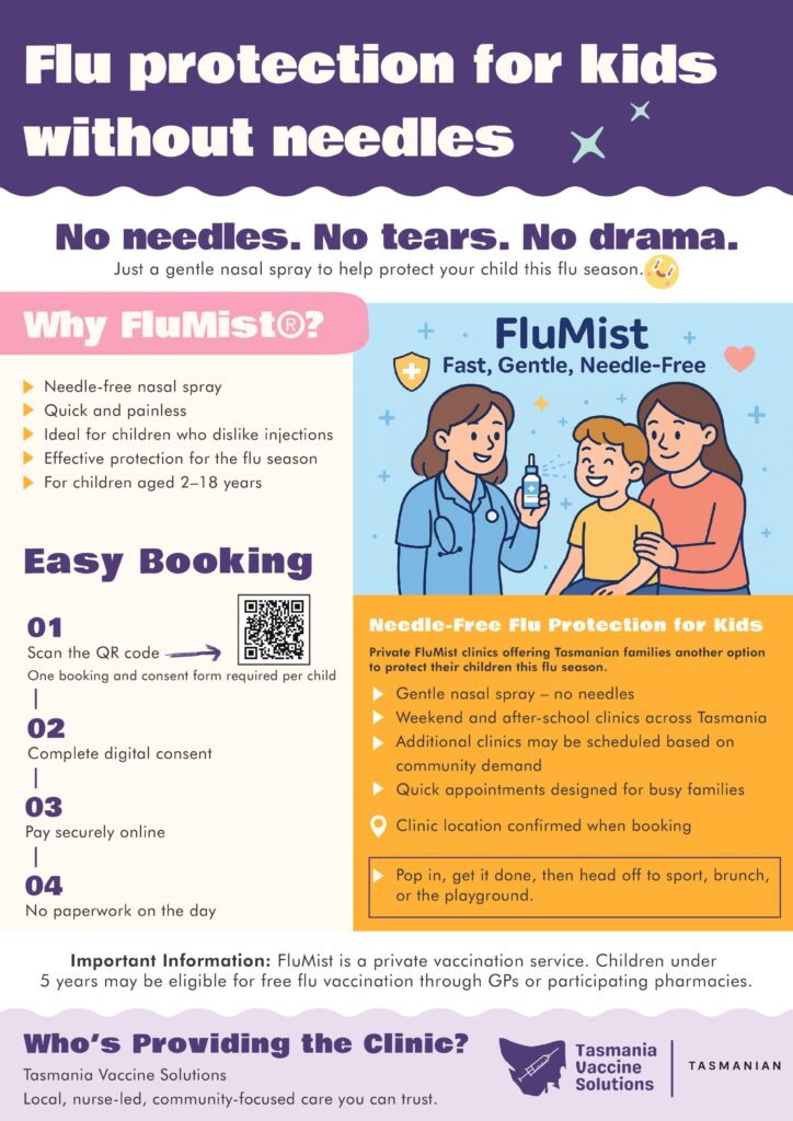 By choosing Tasmania Vaccine Solutions, you’re partnering with a team dedicated to your employees’ health. We handle the logistics and administration, allowing you to focus on what you do best—running your business. Join us in keeping Tasmania healthy and reducing the impact of flu season in the workplace.